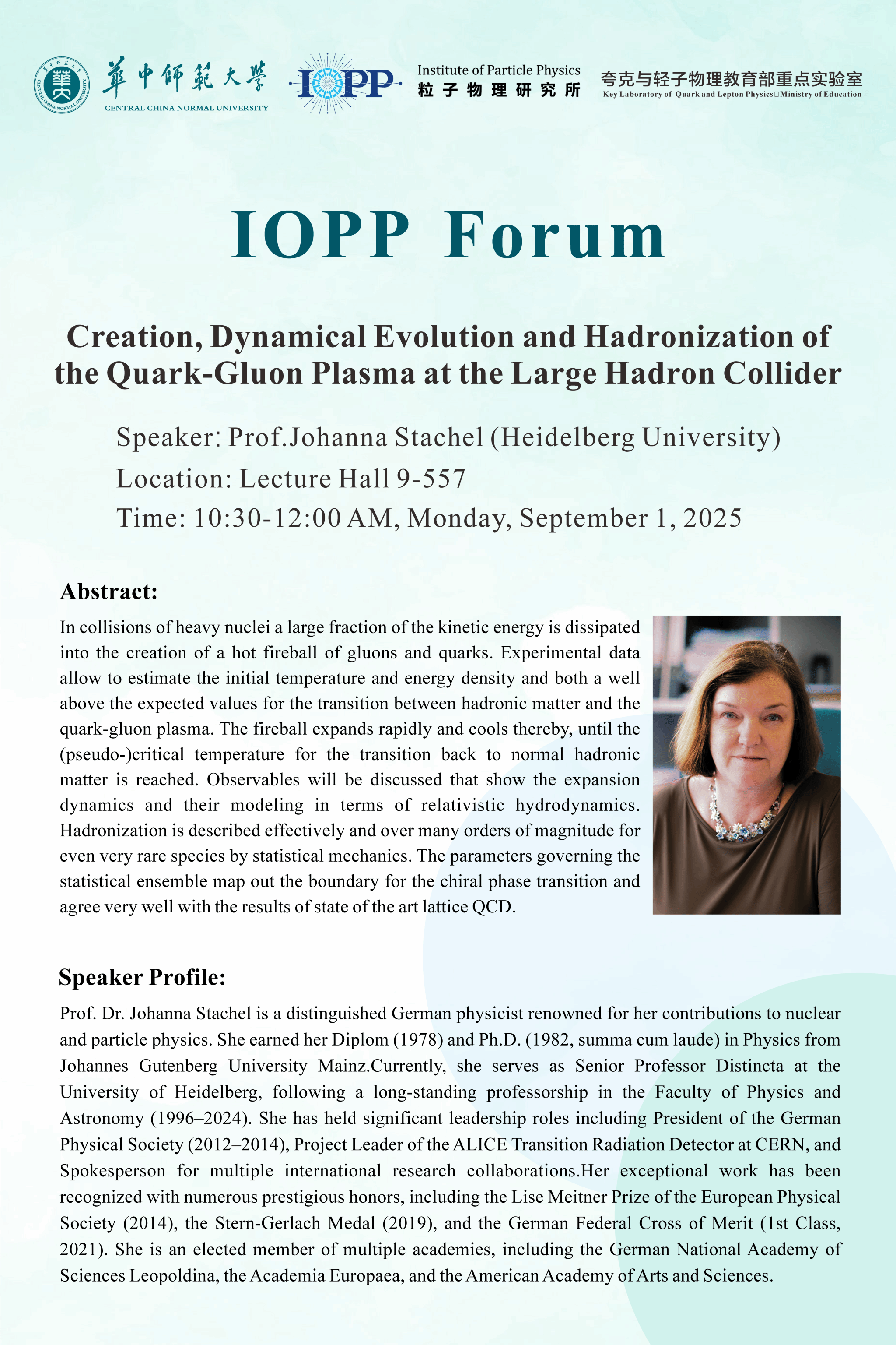 Speaker: Prof,Johanna Stachel (eidelberg University)