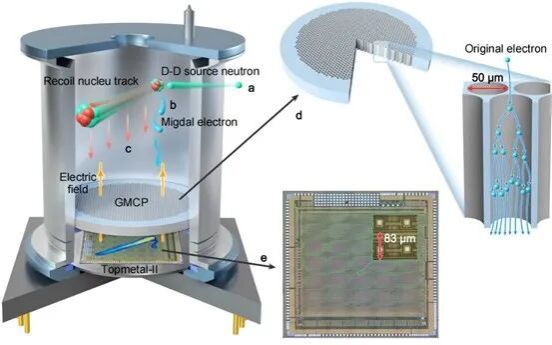 近日,国际顶级学术期刊《自然》发表一项重大物理突破——中国科学院大学领衔联合广西大学、华中师范大学等多所高校科研团队协同攻关,首次成功实现了对前苏联科学家于80余年前预言的“米格达尔(Migdal)效应”的直接实验观测。这一成果为轻暗物质探测突破阈值瓶颈提供了关键支撑,而实现该突破的核心硬件——像素读出芯片Topmetal-II,正是由华中师范大学PLAC实验室自主研制,其超高灵敏度与精准探测性能成为实验成功的核心技术基石。