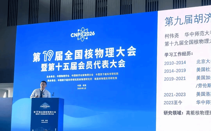 柯伟尧,华中师范大学物理科学与技术学院教授、国家高层次人才。2026年荣获胡济民教育科学奖。主要从事高能核物理理论研究,聚焦电子-重离子碰撞与高能核-核碰撞中的QCD物质效应,曾先后在美国洛斯阿拉莫斯国家实验室、加州大学伯克利分校、劳伦斯伯克利国家实验室从事博士后研究,现获国家人才计划项目资助。