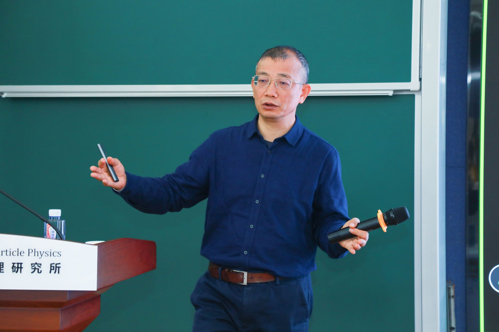 华中师范大学粒子物理研究所所长和华中核理论中心主任王新年教授赠与陈斌教授“第九届粒子所讲坛”纪念奖牌