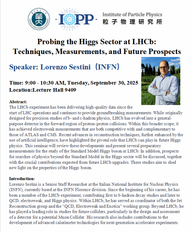 Lorenzo Sestini is a Senior Staff Researcher at the Italian National Institute for Nuclear Physics (INFN), currently based at the INFN Florence division. Since the beginning of his career, he has been a member of the LHCb experiment, contributing first to b-hadron decay studies and later to QCD, electroweak, and Higgs physics. Within LHCb, he has served as coordinator of both the Jet Reconstruction group and the “QCD, Electroweak and Exotica” working group. Beyond LHCb, he has played a leading role in studies for future colliders, particularly in the design and assessment of a detector for a potential Muon Collider. His research also includes contributions to the development of advanced calorimeter technologies for next-generation accelerator experiments.
