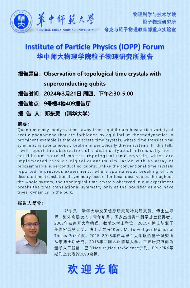 报告题目:Observation of topological time crystalswith superconducting qubits